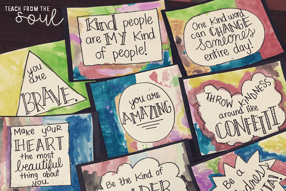 During the month of February, my elementary school focuses on Random Acts of Kindness. Although, we focus on kindness every day in first grade. In the past, my class completed a service project to collect items for local homeless shelters. However, I wanted to show my students that a kind word or a compliment can change someone’s entire day! Random Acts of Kindness can be really simple! One morning before school, I had a burst of inspiration to make kindness-related artwork to hang in the hallways at school. Sitting at my kitchen table, with a fresh cup of coffee in hand, I took to Pinterest to find some inspiring kindness quotes. I hand-lettered my favorites onto white card stock with a black Crayola marker. I was immediately in LOVE with the quotes and saw unlimited potential for spreading kindness!